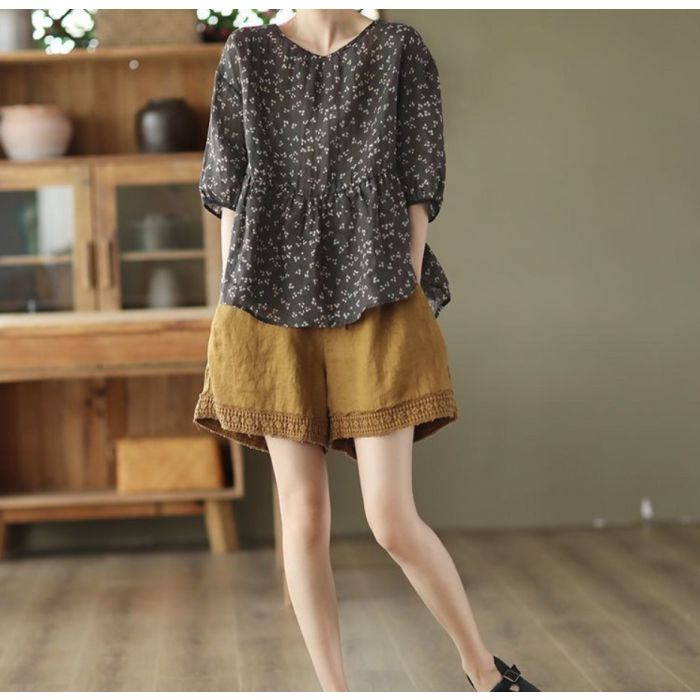 - شورت صيفي فضفاض من القطن والكتان والكروشيه للسيدات