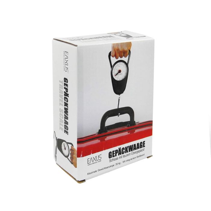 - مع ميزان الأمتعة التناظري من Eaxus، لن تواجه أي مفاجآت غير سارة في المطار. يحتوي ميزان الأمتعة على علاقة لتعليق حقيبة السفر أو أي أغراض أخرى.