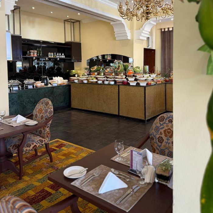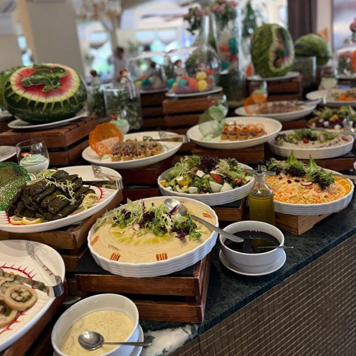 استمتعوا بـ بوفيه غداء يوم 5 أبريل، يشمل تشكيلة واسعة من الأطباق العالمية والمحلية والمشروبات الطازجة — تجربة مثالية للغداء مع العائلة أو الأصدقاء.