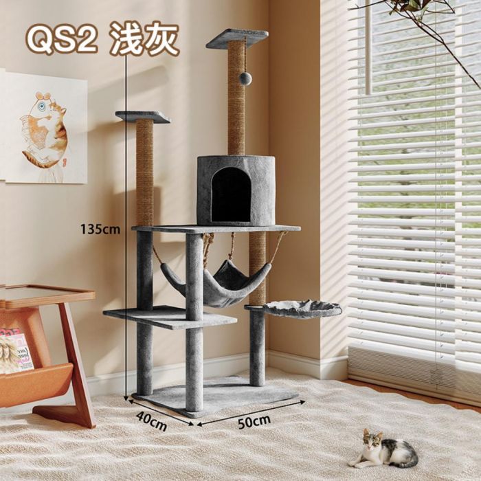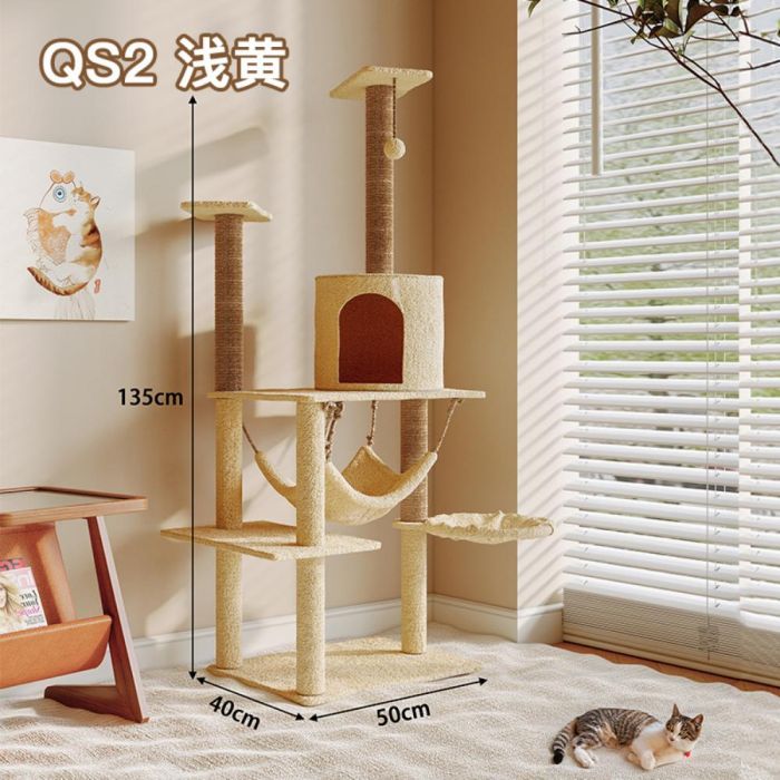 - يتميز بتصميم فاخر متعدد المستويات يمنح القطط تجربة لعب وتسلق مريحة داخل المنزل