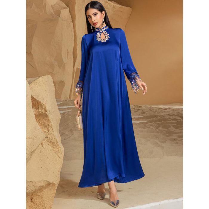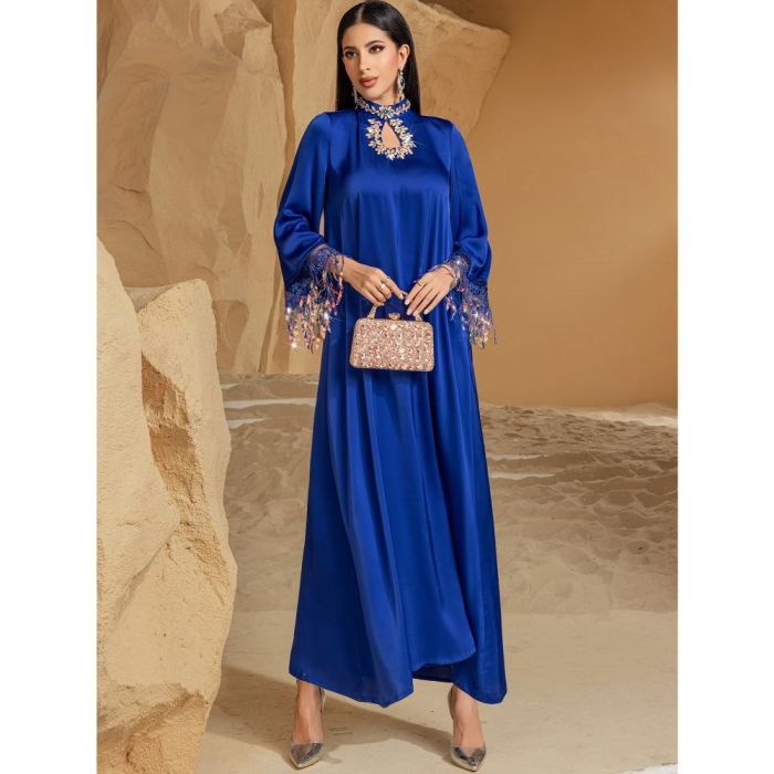 عباية بتصميم فاخر للسيدات مصنوعة من خامة بوليستر ناعمة، تمنح إطلالة راقية بانسيابية جذابة، تفاصيل مزينة تضيف لمسة فخامة هادئة، مناسبة للمناسبات والسهرات وتكمل الحضور بثقة وأناقة