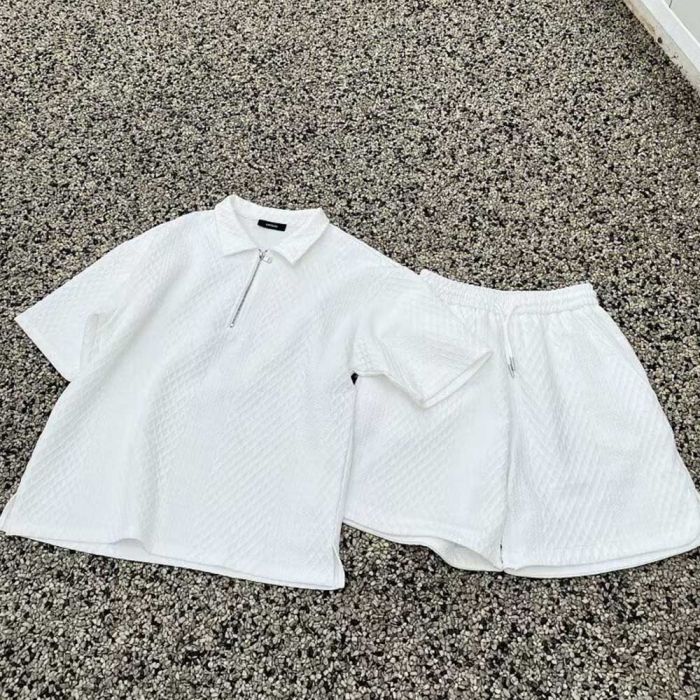 - طقم متكامل من تي شيرت نصف كم بولو مطرز وشورت.