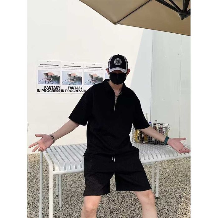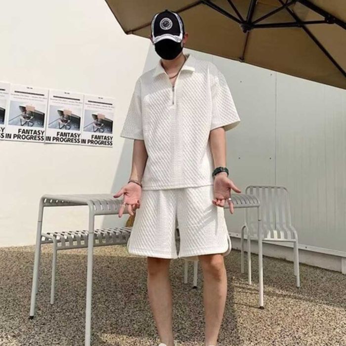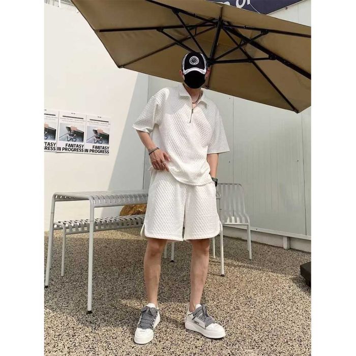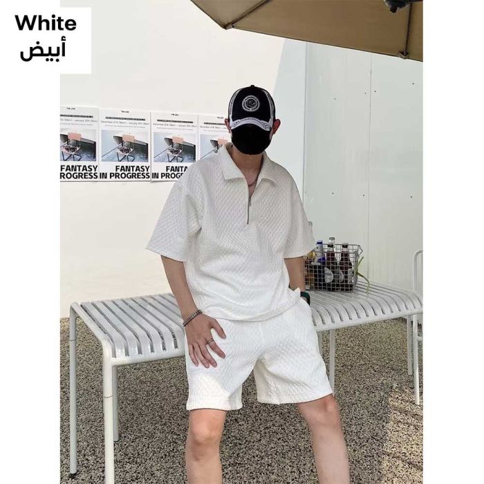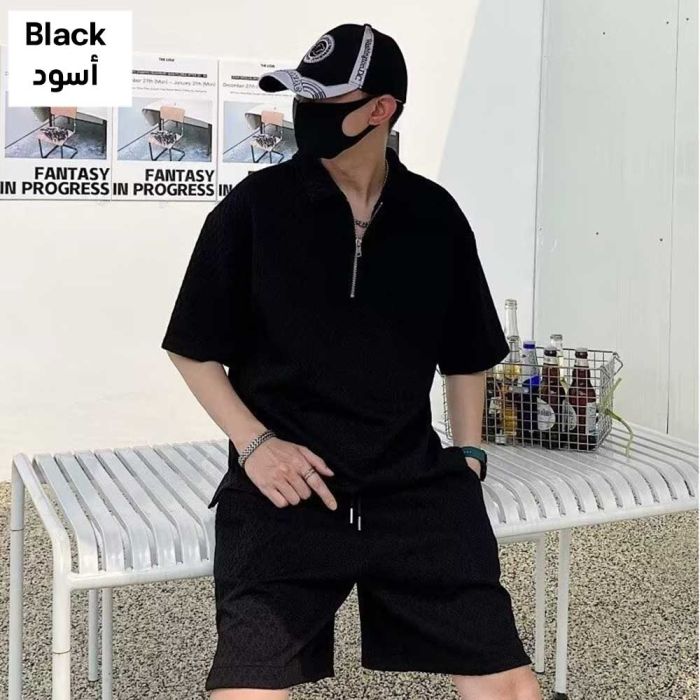 - طقم بولو وشورت مطرز فاخر للرجال