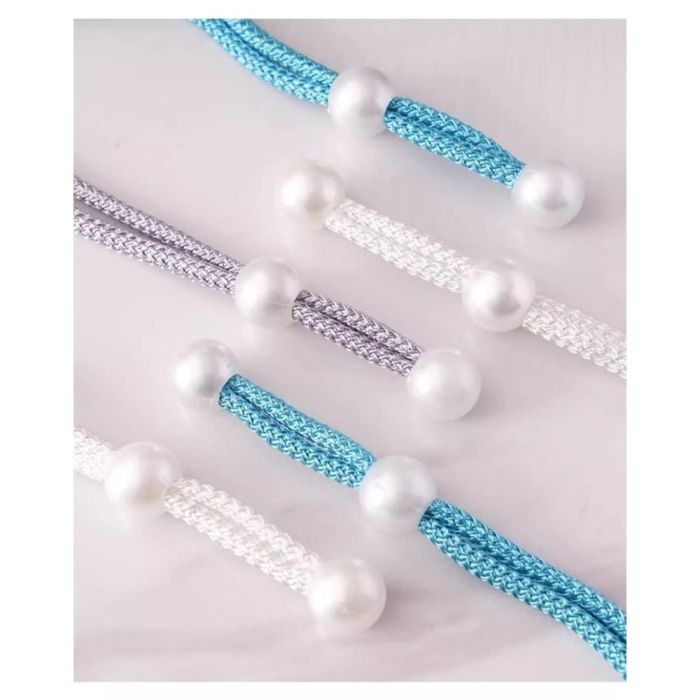 - الخامة: خيوط بوليستر متينة ولؤلؤ صناعي (PVC)