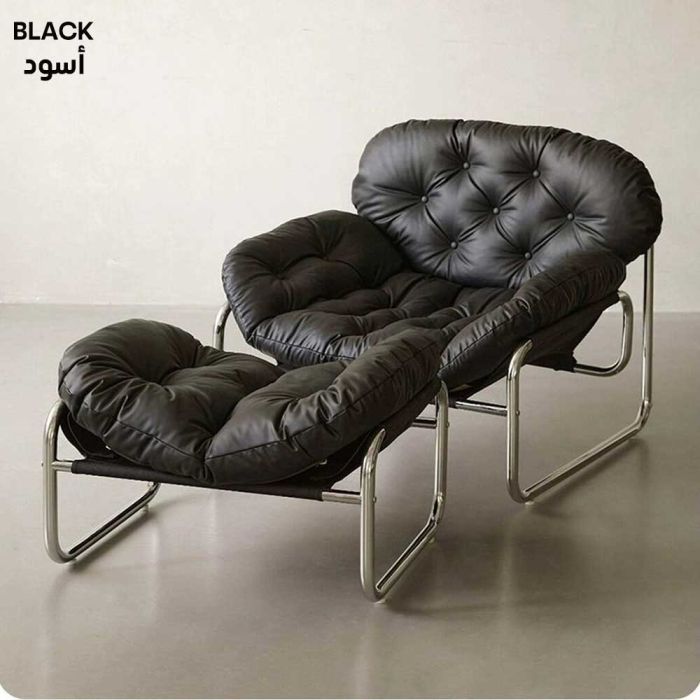 - كرسي استرخاء جلد فاخر مع مسند للقدمين