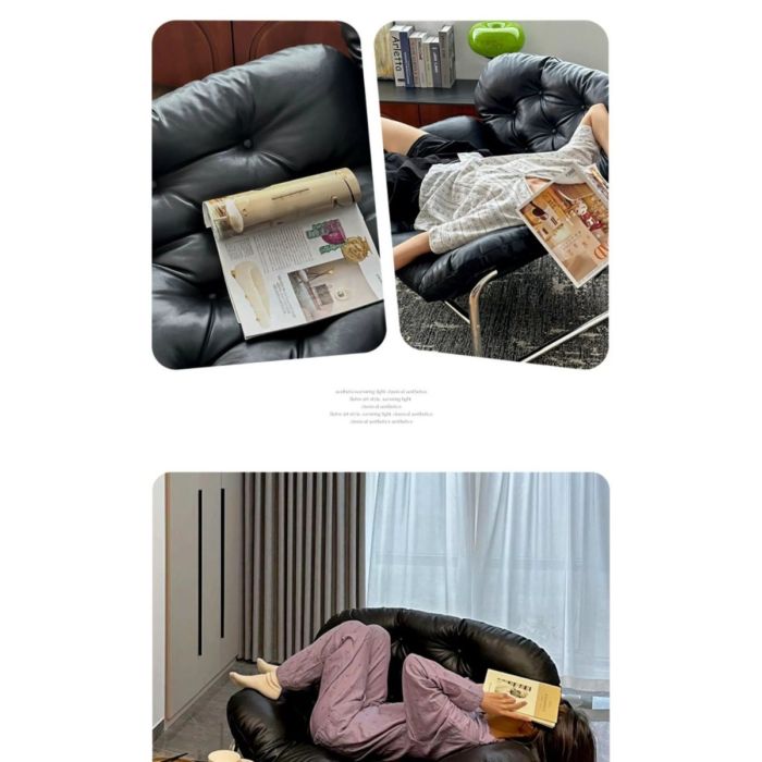 كرسي استرخاء جلد فاخر مع مسند للقدمين