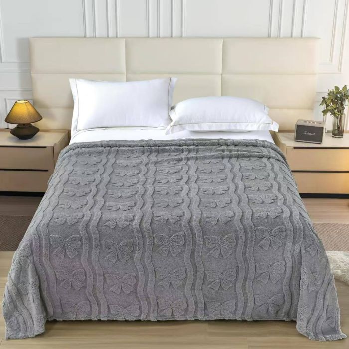 - صُممت هذه البطانية ذات الوجهين بمخمل ناعم وكثيف على جانب واحد، وتتميز بفرو فاخر ودافئ للغاية لراحة أنيقة طوال العام.