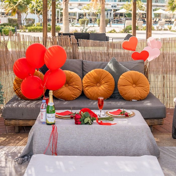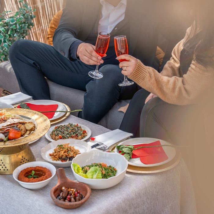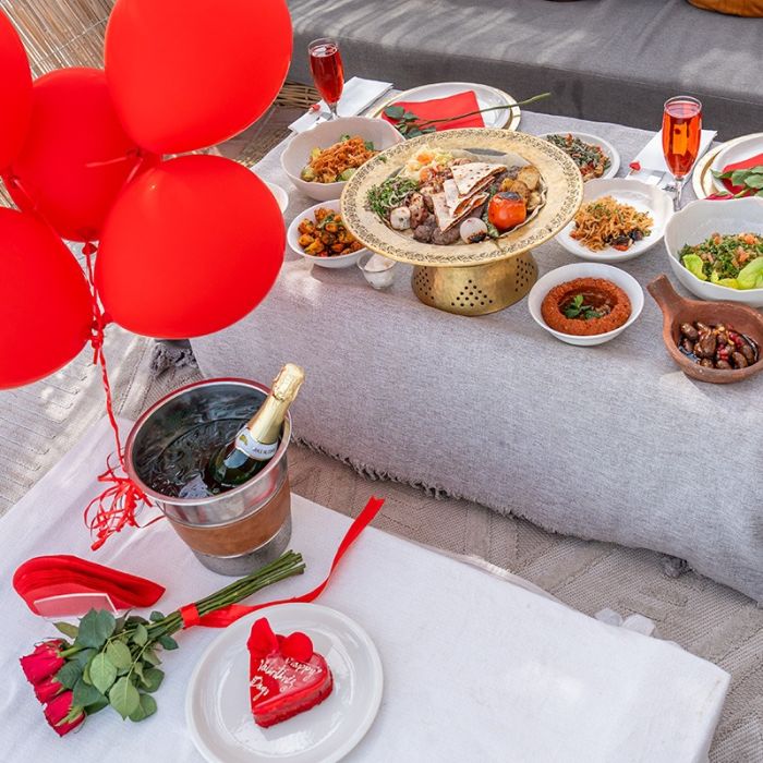 احتفلوا بـ ليلة الفالنتين مع عشاء من قائمة خاصة لشخصين في كشته الأرجان. استمتعوا بـ مشروب فوار، ورود، تزيين رائع، وموقد نار دافئ لأمسية رومانسية لا تُنسى.
