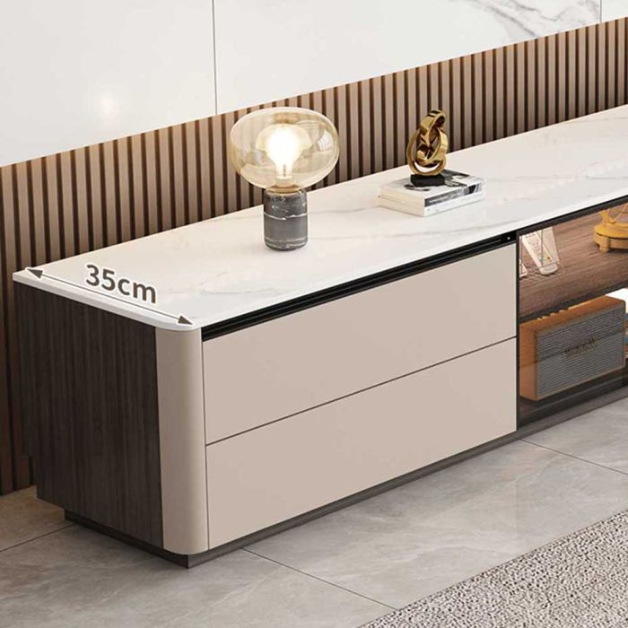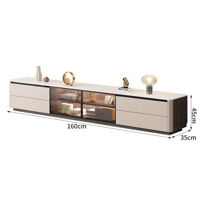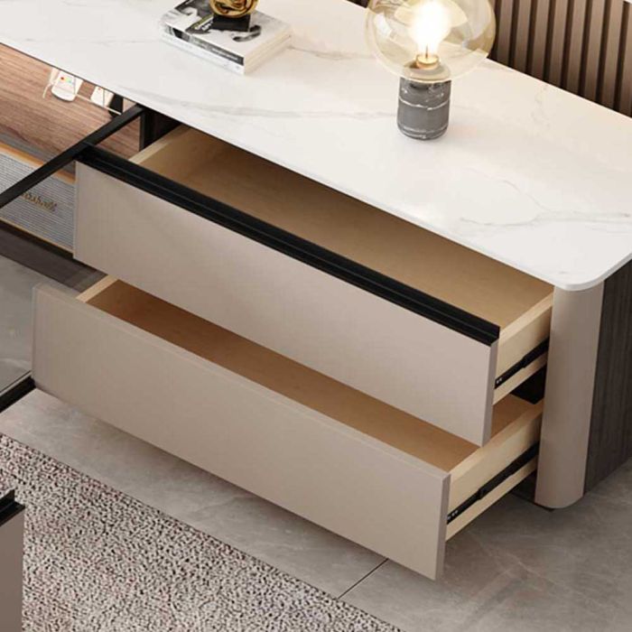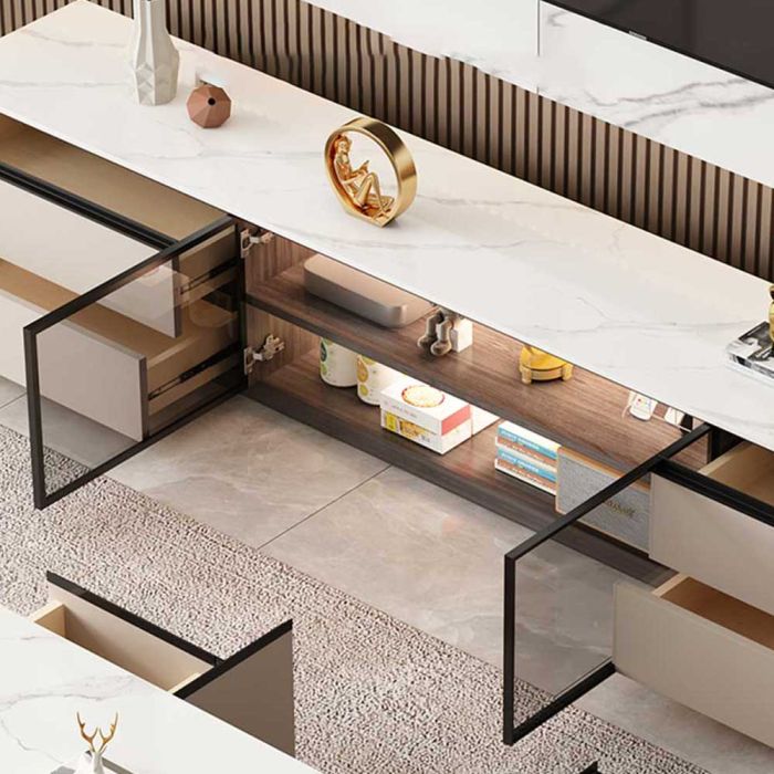 طاولة تلفزيون من الخشب المضغوط فاخرة مع 4 أدراج وأبواب مزدوجة