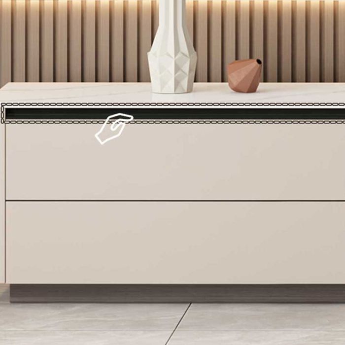 - الخامة: خشب مضغوط مع سطح رخامي و أبواب من الزجاج المقسي