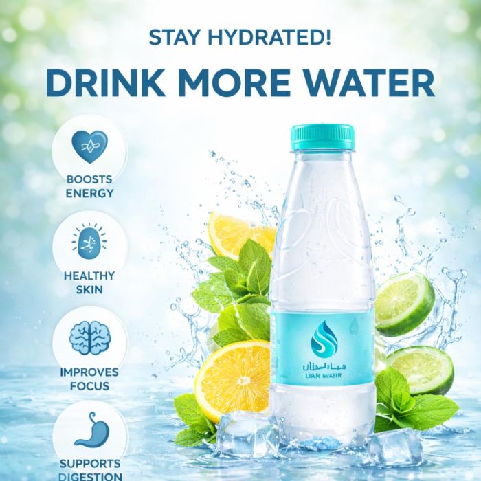 رفيقك اليومي لجسم صحي. مياه لوزان مستخرجة من آبار المياه الجوفية الطبيعية وتخضع لعملية تنقية متطورة لتقديم نقاء حقيقي ومذاق منعش في كل رشفة. منخفض الصوديوم لدعم توازن الجسم، وطرد السموم، وتنظيم درجة الحرارة على مدار اليوم