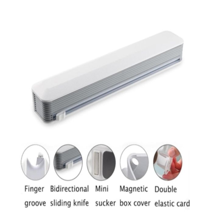 صُمم موزع البلاستيك اللاصق المزود بقاطعة مغناطيسية لتسهيل مهام مطبخك. بفضل أكواب الشفط القوية والقاعدة المغناطيسية، يمكن تثبيته بسهولة على الثلاجة، أو وضعه على سطح الطاولة، أو حمله باليد للاستخدام. تحتوي القاطعة المدمجة على شفرة مخفية من الستانلس ستيل تنزلق بسلاسة، مما يضمن قطعًا نظيفًا ومستقيمًا في كل مرة دون أي خطر على الأصابع.