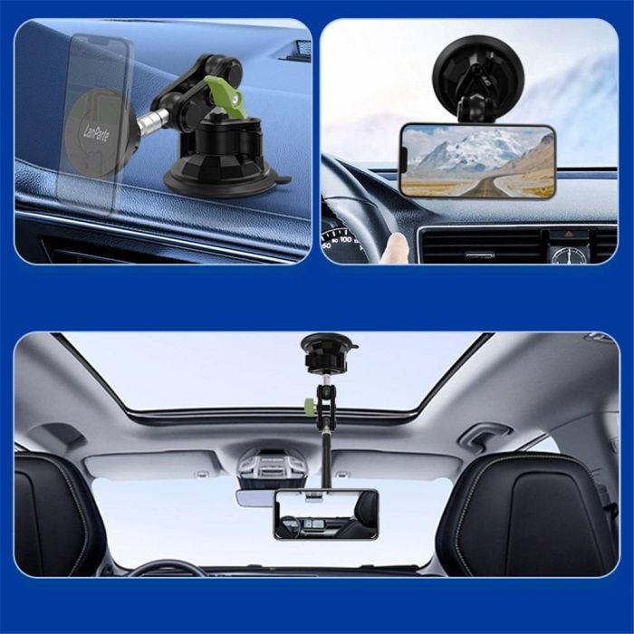 توفر هذه القاعدة متعددة الاستخدامات تجربة سلسة ومصممة خصيصاً لتلبية احتياجاتك، حيث يسمح التصميم المبتكر بالتثبيت الآمن على الأسطح المختلفة باستخدام كوب الشفط أسفل القاعدة، بينما يوفر الذراع القابل للتمدد مع المفصليات تعديل الزاوية بسهولة للعرض الأمثل