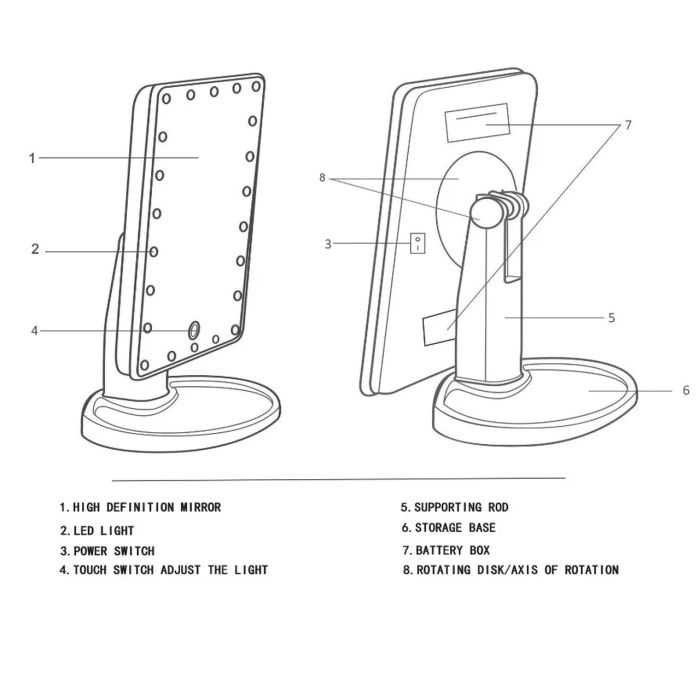 - فقط اضغط على مفتاح اللمس الخاص بمرآة المكياج لتشغيل الضوء؛ اضغط لفترة طويلة على زر شاشة اللمس لضبط السطوع حسب الحاجة