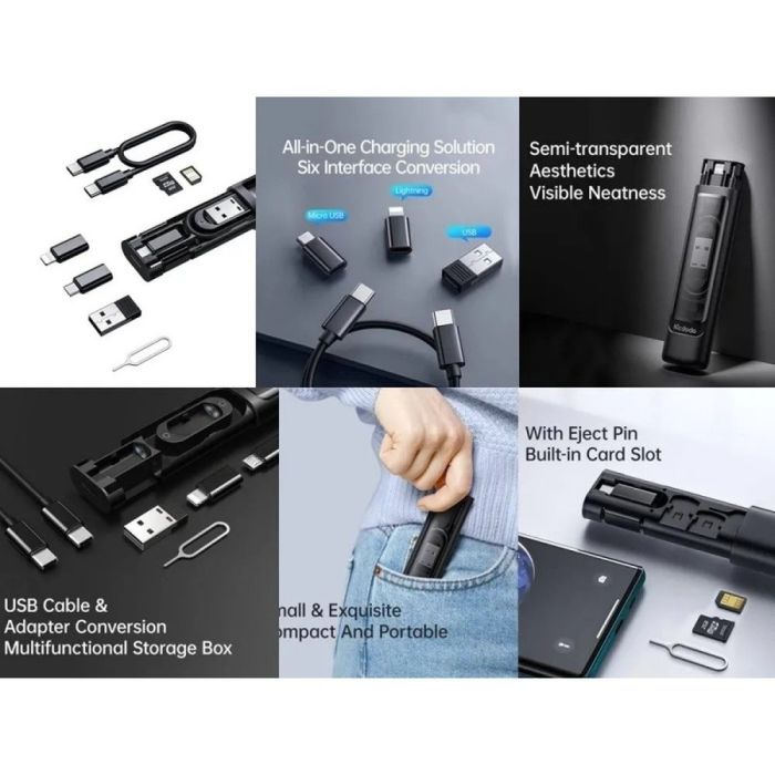 طريقة ذكية للحفاظ على جميع ملحقات الشحن والاتصال في مكان واحد منظم. يتيح لك التبديل بسهولة بين أنواع المنافذ المختلفة دون الحاجة إلى حمل عدة كيبلات