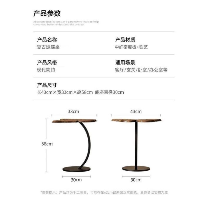 - طاولة جانبية بتصميم فراشة خشبMDF وإطار حديد 43×33×58 سم