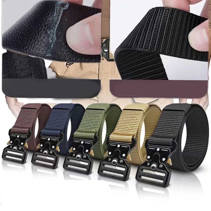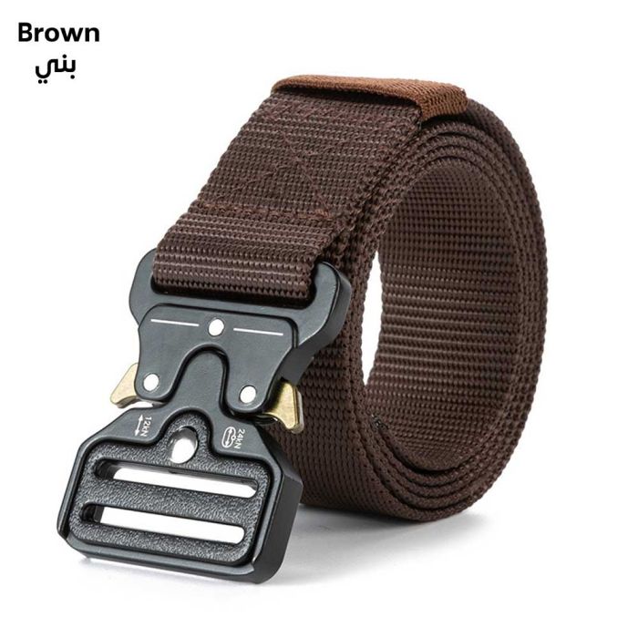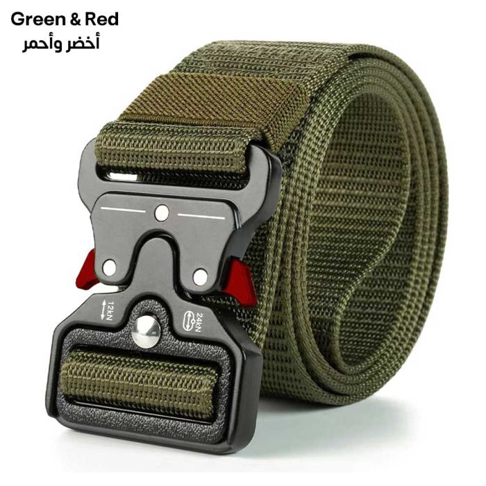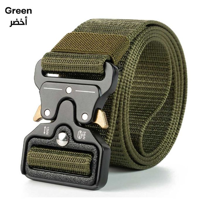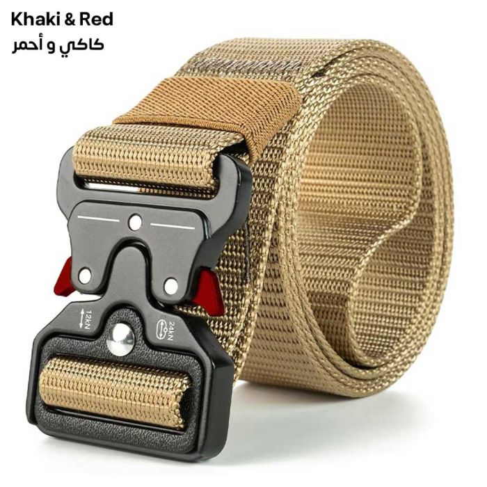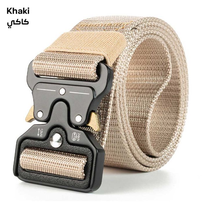 حزام عسكري نايلون متين للرجال مصنوع من نسيج النايلون المقاوم للتآكل والمتانة العالية، مصمم خصيصاً ليتحمل أصعب ظروف العمل والتدريب الخارجي، يتميز بإبزيم آلي قوي يضمن ثباتاً محكماً وسهولة في الاستخدام والتحرير السريع، مثالي للاستخدام مع بنطلونات العمل والملابس التكتيكية والرياضية، يوفر دعماً قوياً للخصر دون التسبب في أي ضغط غير مريح، يتميز بتصميم أنيق وبسيط يناسب الإطلالات اليومية أيضاً، خيار مثالي للرجال الذين يبحثون عن الأداء العالي والموثوقية المطلقة، يحافظ على جودته ومتانته تحت أي ظروف.