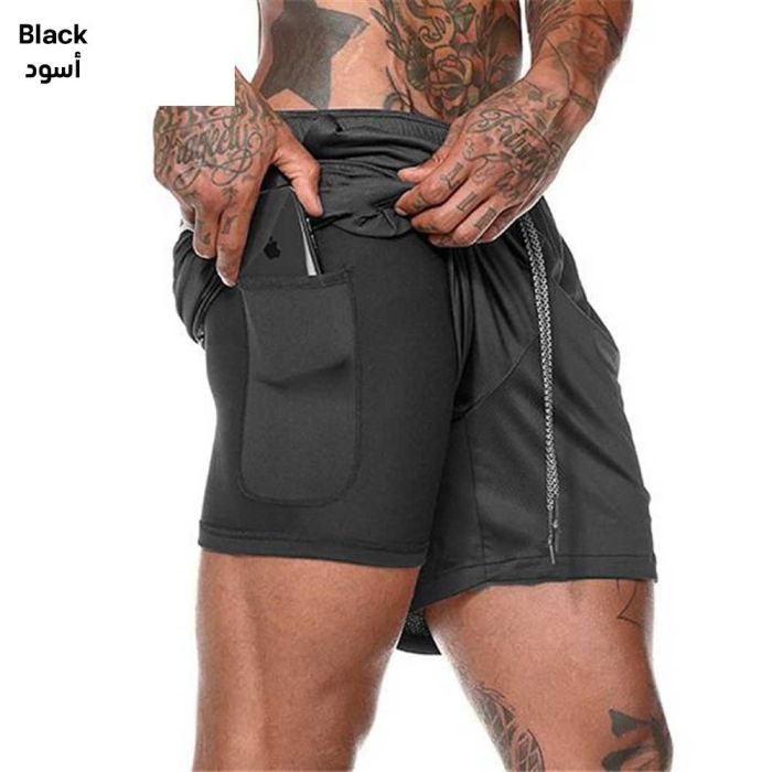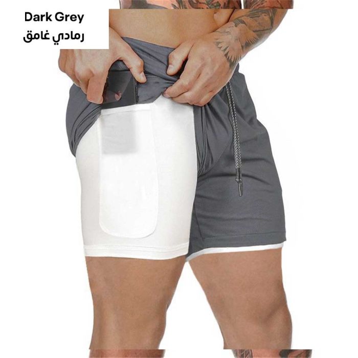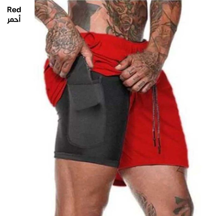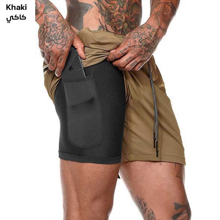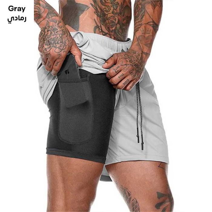 شورت رياضي للياقة البدنية للرجال مصنوع من مواد عالية الجودة تضمن الراحة والتهوية أثناء التمرين، يتميز بتصميمه العصري والعملي الذي يتيح حرية الحركة بفضل طبقته المزدوجة وخاماته السريعة الجفاف، يحتوي على خمس جيوب لتوفير مساحة كافية لحمل الأغراض الشخصية بسهولة، مما يجعله الخيار المثالي للتمارين الرياضية والنشاطات اليومية.