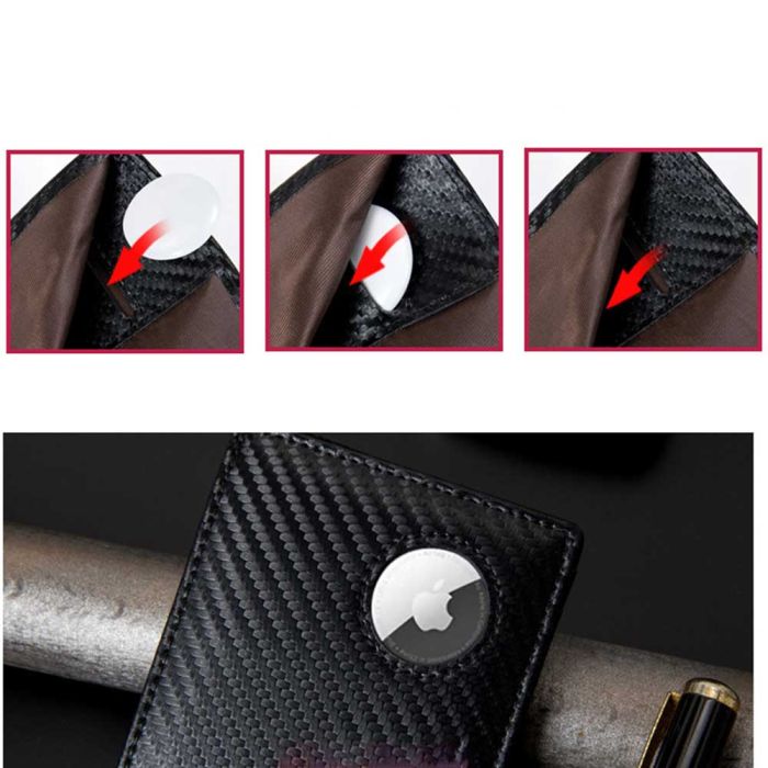 - محفظة جلد طبيعي مع حافظة AirTag للرجال