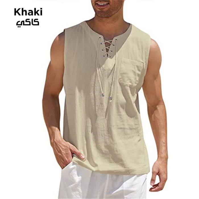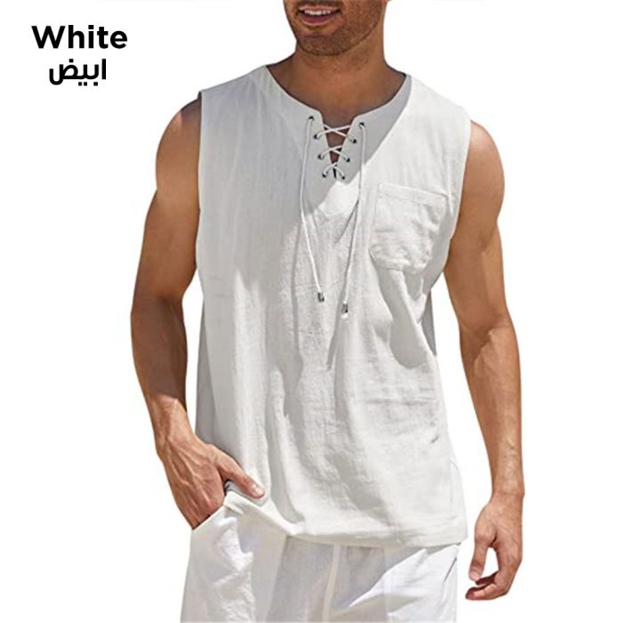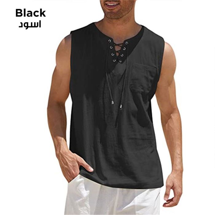 - تيشيرت قطن بأربطة أنيقة للرجال