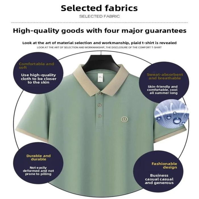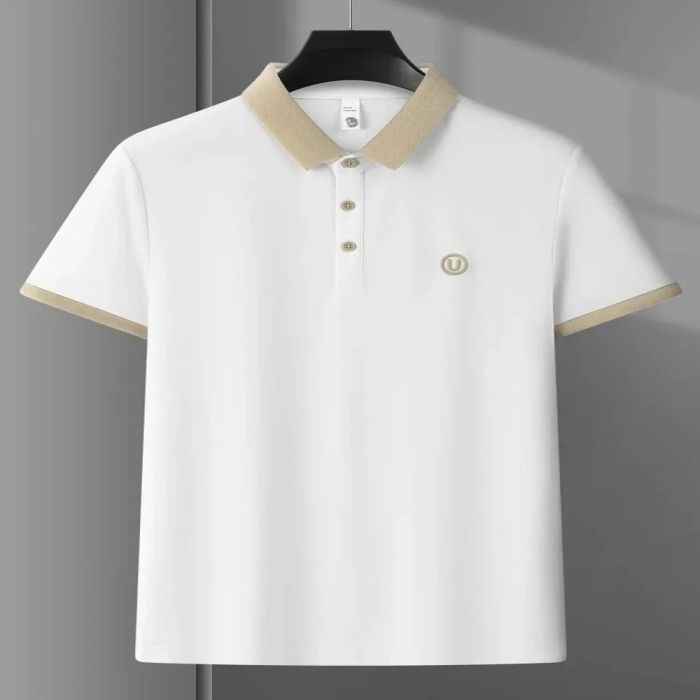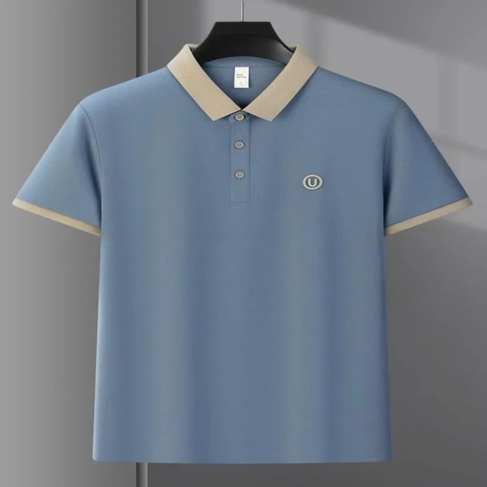 تيشيرت بولو مطرز خفيف للرجال مصنوع من نسيج خفيف الوزن وبارد الملمس، مثالي للارتداء في أيام الصيف الدافئة، يتميز بتطريز دقيق وشعار أنيق يضفي لمسة من التميز والفخامة على التصميم، يتميز بياقة واقفة مع تباين جذاب في الألوان، مما يجعله قطعة مميزة وعصرية، يتميز بقصة مريحة تسمح بالتهوية وتحافظ على جودته، يمكنك ارتداؤه في النزهات والجولف واللقاءات الكاجوال، يمنحك إحساساً بالانتعاش والأناقة على مدار اليوم.