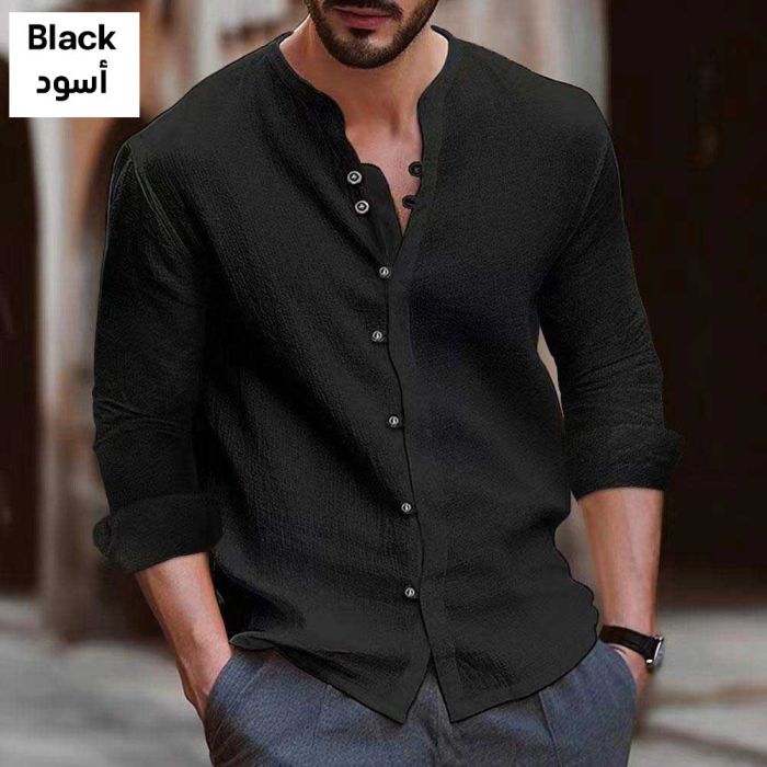 قميص كتان بأكمام طويلة للرجال مصنوع من ألياف طبيعية تمنح مظهراً أنيقاً ولمسة مريحة، تصميمه الكلاسيكي يناسب الإطلالات اليومية والرسمية الخفيفة، يمنح حرية حركة ويعزز الإطلالة بثبات وأناقة