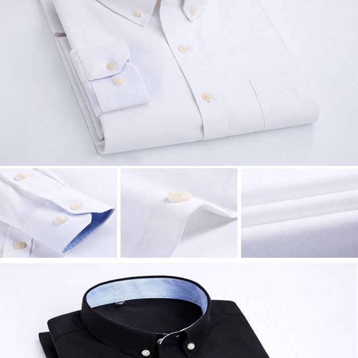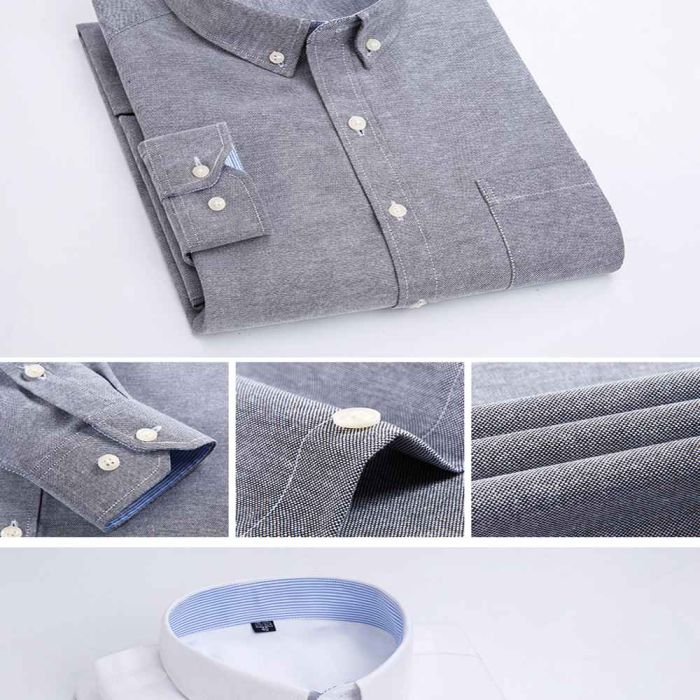 قميص أوكسفورد كلاسيكي للرجال مصنوع من مزيج قطن ناعم ومريح مناسب للارتداء في فصلي الربيع والخريف، يتميز بتصميم لون موحد مع ياقة مربعة أنيقة وأكمام طويلة، يمكن ارتداؤه كقطعة أساسية أو ككارديجان خفيف، مما يجعله خياراً متعدد الاستخدام للإطلالات الكاجوال والعملية، ليعكس مظهراً كلاسيكياً محترفاً.
