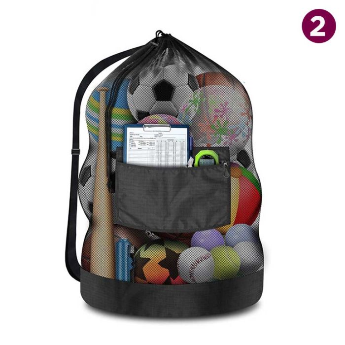 - حقيبة تخزين كرات رياضية شبكية مع حزام كتف