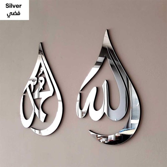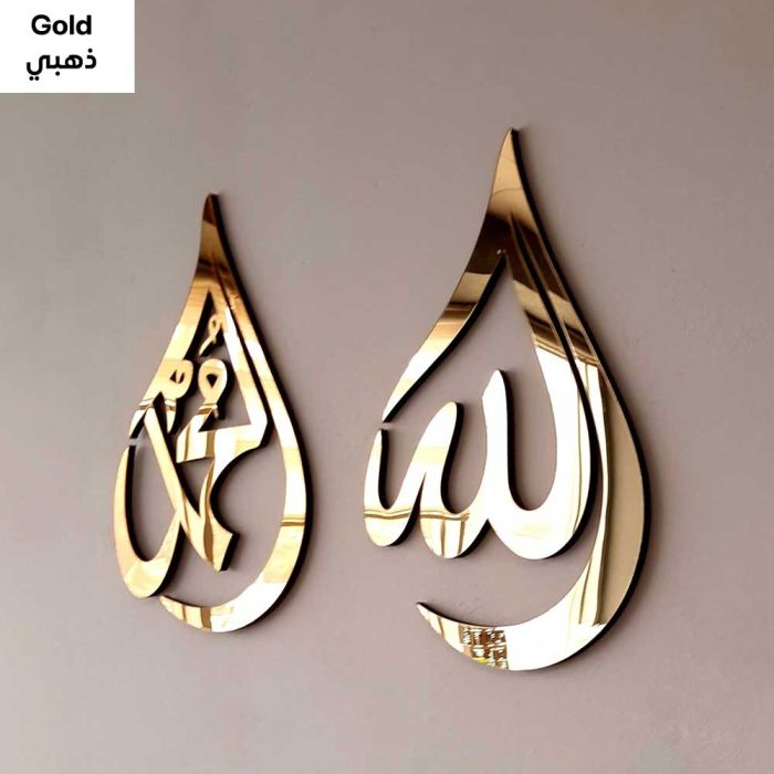لوحة جدارية إسلامية اسم الله (سبحانه وتعالى) ومحمد (صلى الله عليه وسلم) بالخط العربي من الأكريليك مقاس 75 × 50 سم