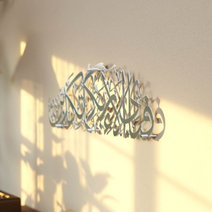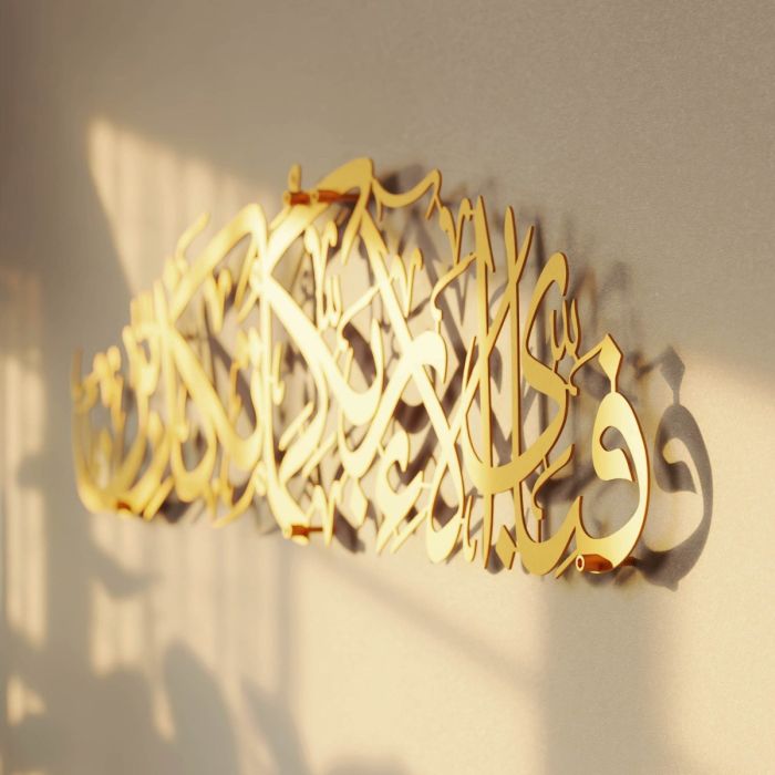 تحفة فنية إسلامية مميزة، تحمل الآية الكريمة "فَبِأَيِّ آلاءِ رَبِّكُمَا تُكَذِّبَانِ". صُنعت من معدن متين عالي الجودة، لتجمع بين العمق الروحي والجمال الفني. يتميز النقش العربي بدقة متناهية ليكون تذكارًا خالدًا للشكر والبركة الإلهية. تُناسب هذه اللوحة تزيين غرف المعيشة، المكاتب، أو أماكن الصلاة. فهي ليست مجرد تذكار روحاني، بل قطعة ديكور أنيقة تمزج بين الأصالة والتصميم العصري.