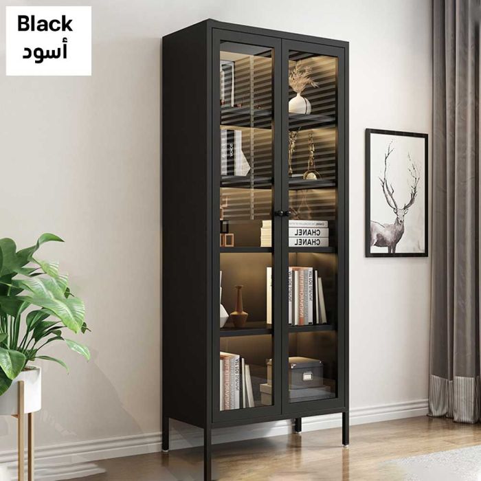منظم معدني 5 طبقات بأبواب زجاجية مصنوع من هيكل معدني مع أبواب زجاجية شفافة، يمنحك عرضاً أنيقاً وتنظيماً واضحاً لمقتنياتك، يساعدك على ترتيب المساحة، ويضيف لمسة راقية للمكان