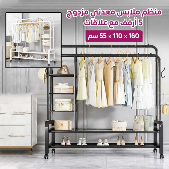صفقة اليوم هي منظم ملابس معدني مزدوج 5 أرفف مع علاقات 160 × 110 × 55 سم