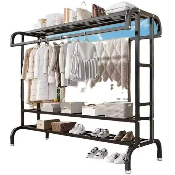 - رف ملابس معدني مع رفوف وقضبان تعليق جانبية مزدوجة