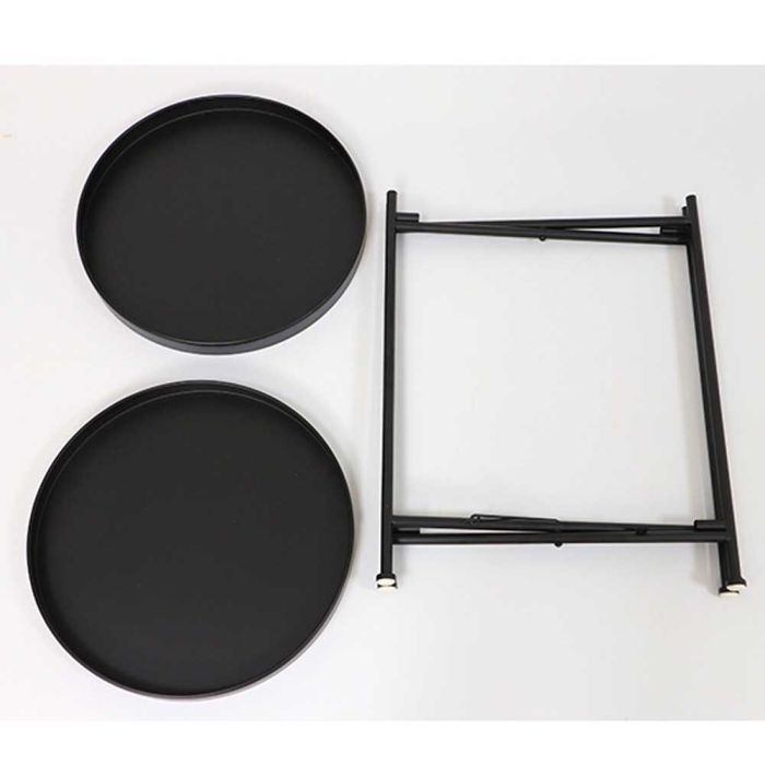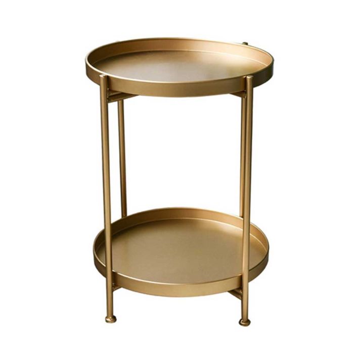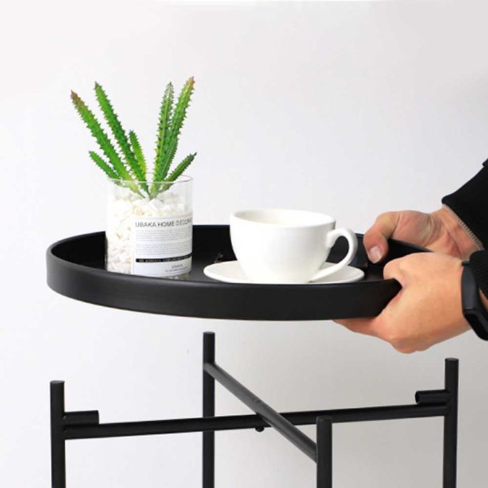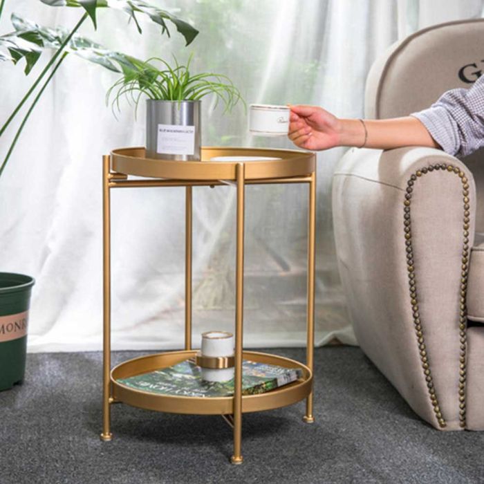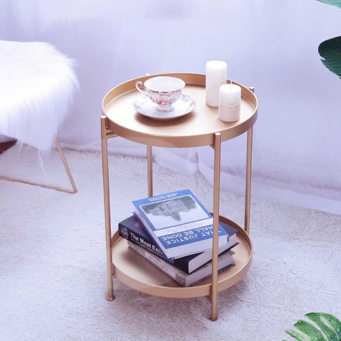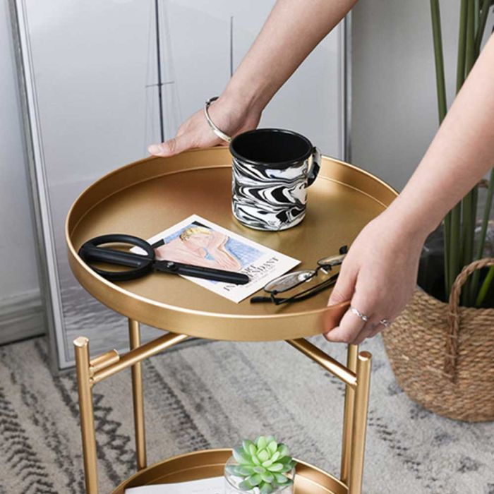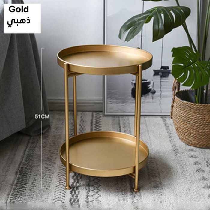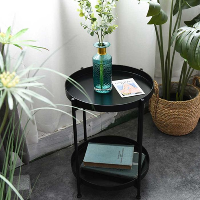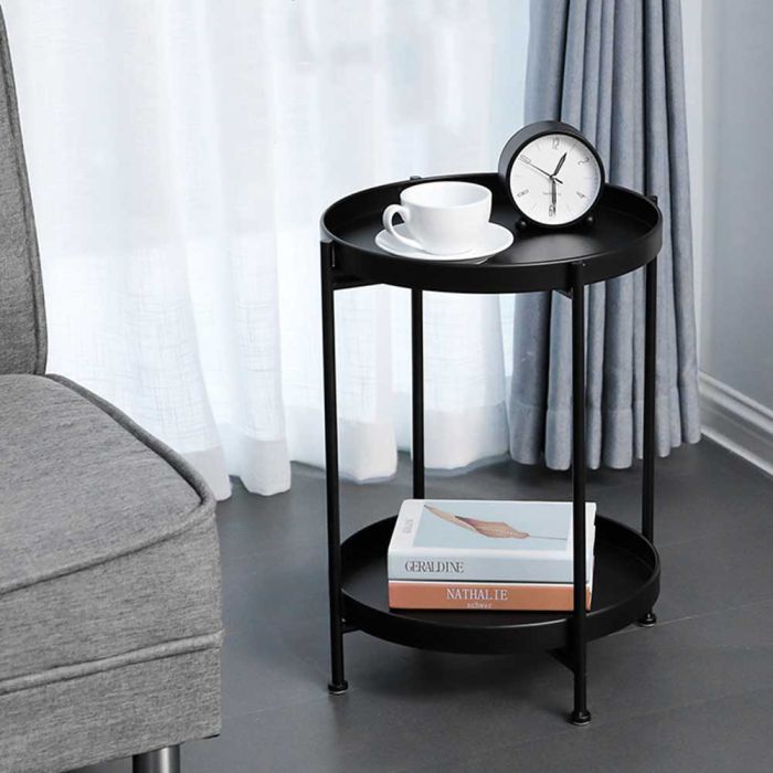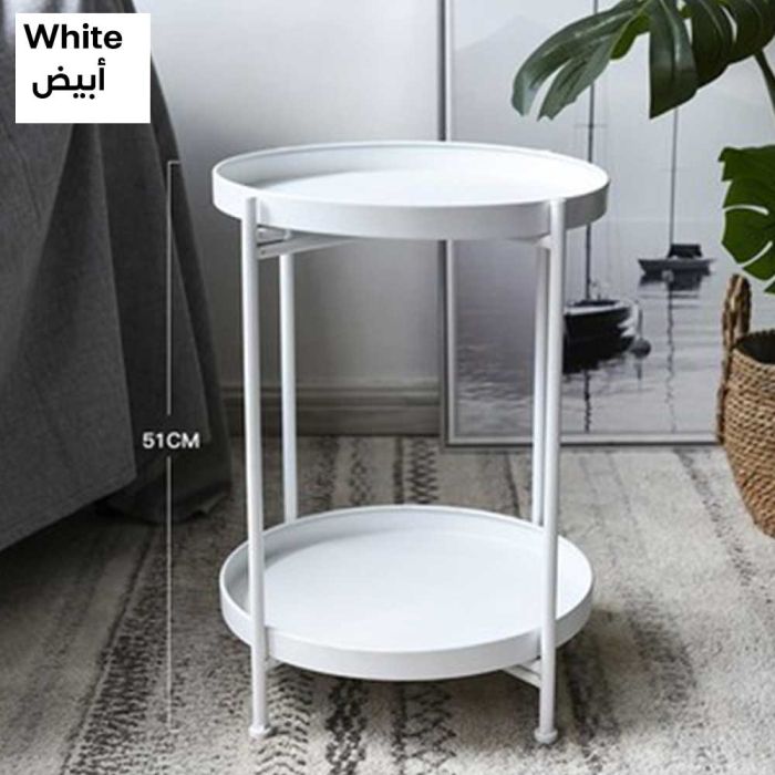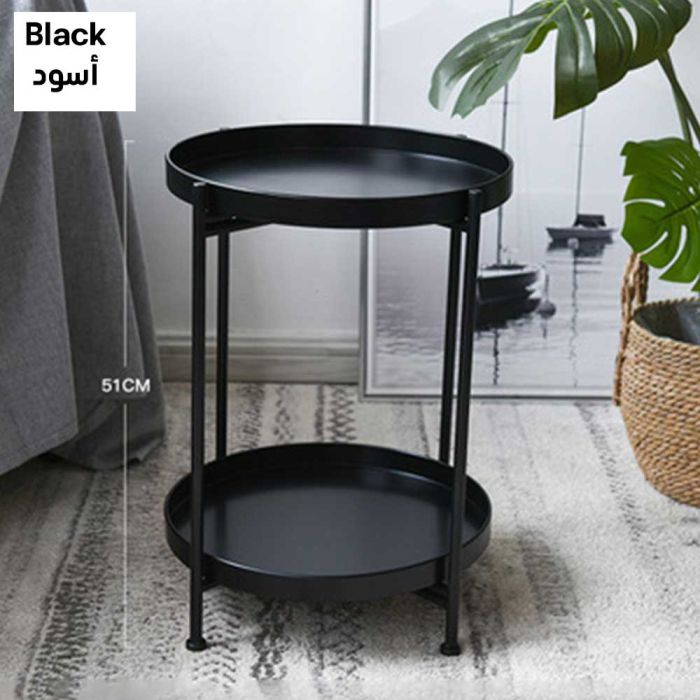 طاولة معدنية جانبية بسطح متحرك مصنوعة من معدن متين، بصينية علوية سهلة الرفع وصينية سفلية للتخزين، أقدام مانعة للانزلاق تحمي الأرضية، تصميم قابل للفك والنقل ليكون بجانبك أينما تحب