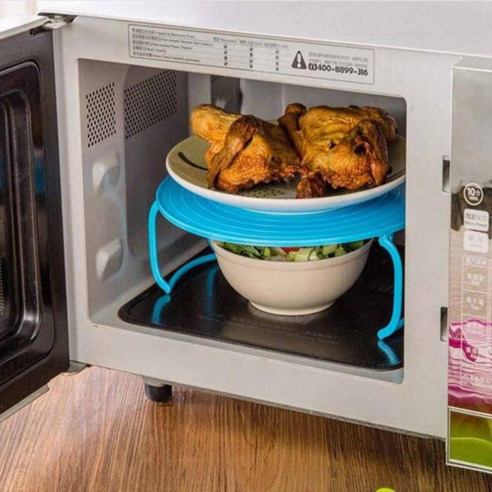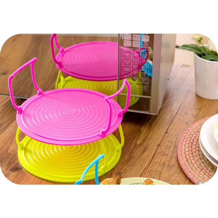 اجعل إعادة تسخين وجباتك أسهل وأكثر أمانًا مع حامل أطباق الميكروويف. مصمم للحفاظ على ثبات طعامك أثناء التسخين، يمنع هذا الحامل العملي الانسكابات، ويحمي يديك من الأطباق الساخنة، ويسمح للبخار بالتوزيع بالتساوي. متوفر بألوان متعددة، ويضيف لمسة مبهجة إلى مطبخك ويوفر لك الراحة اليومية. خفيف الوزن، متين، وسهل التنظيف، إنه الملحق المثالي للطهي في الميكروويف دون عناء.