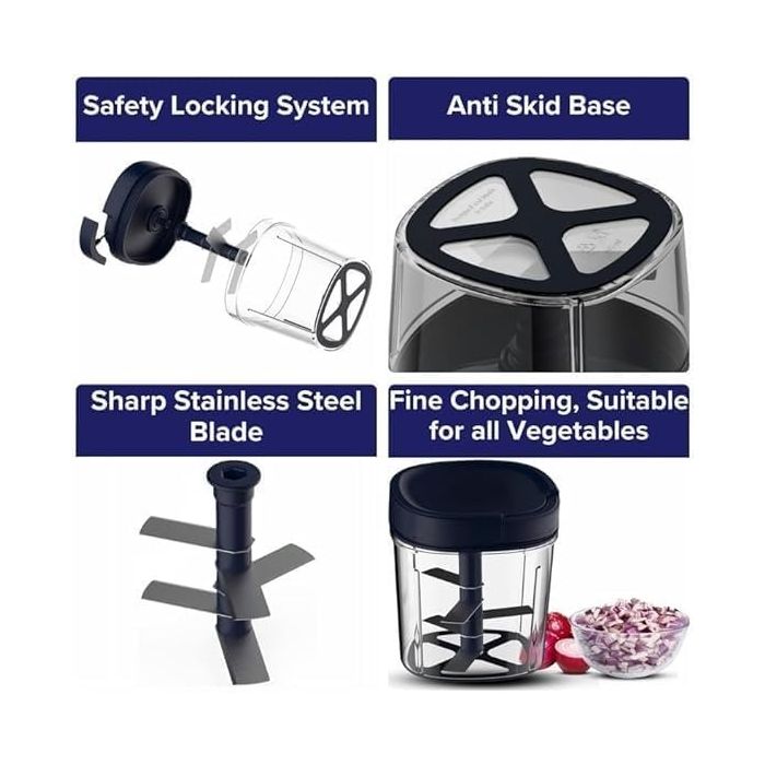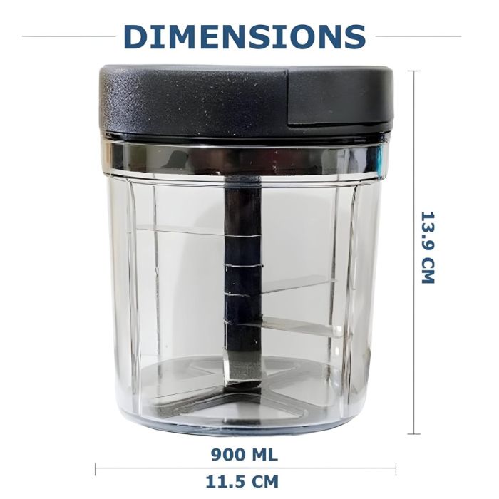 اجعل تحضير الطعام أسرع وأسهل مع قطاعة الخضار اليدوية الصغيرة هذه. تتميز بسعة 900 مل ومزودة بـ 5 شفرات من الستانلس ستيل لتقطيع الخضار والفواكه بسهولة. مصنوعة من بلاستيك ABS عالي الجودة لضمان المتانة والأمان، كما أن حجمها الصغير يجعلها مثالية لأي مطبخ. سهلة الاستخدام والتنظيف، وهي أداة عملية للطهي اليومي.