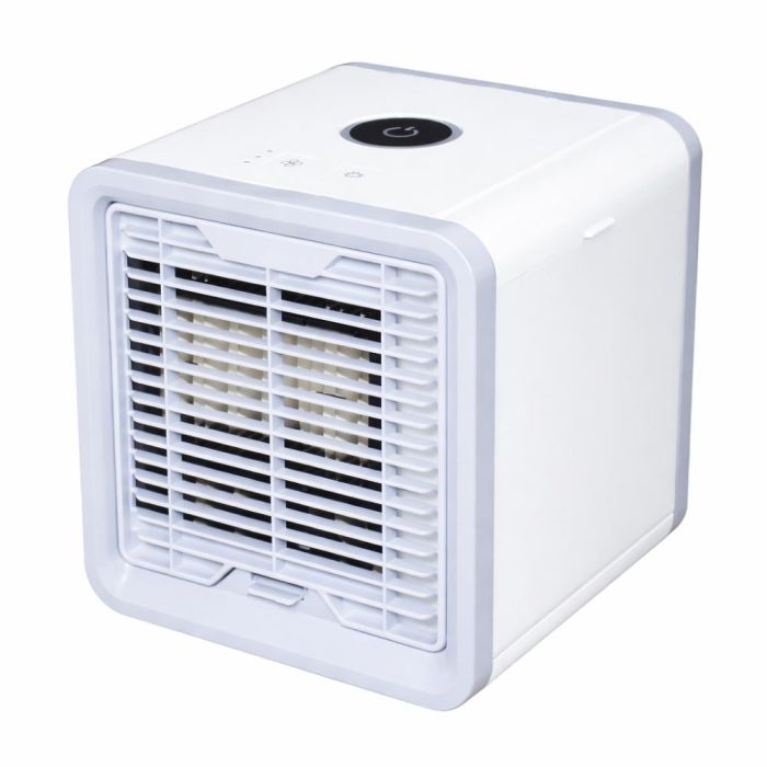 مبرد هواء صغير ومحمول بتصميم عملي، يوفر تبريدًا سريعًا مع إضاءة LED ملونة وسهولة الاستخدام في أي مكان.