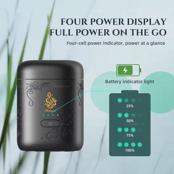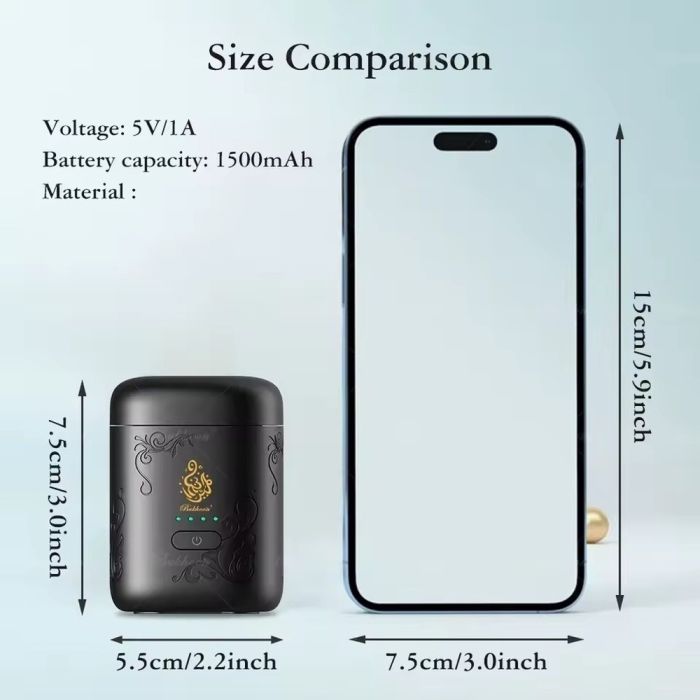 تجربة عطرية فورية مع المبخرة الكهربائية الميني القابلة للشحن، حيث يتيح التسخين السريع إطلاق رائحة البخور بسرعة وفعالية مع توزيع متساوٍ للعطر في المكان. تصميمها الخفيف يجعلها مثالية للاستخدام في المكتب أو السيارة، لتمنحك أجواءً منعشة ومريحة في أي وقت وأي مكان بسهولة وراحة.