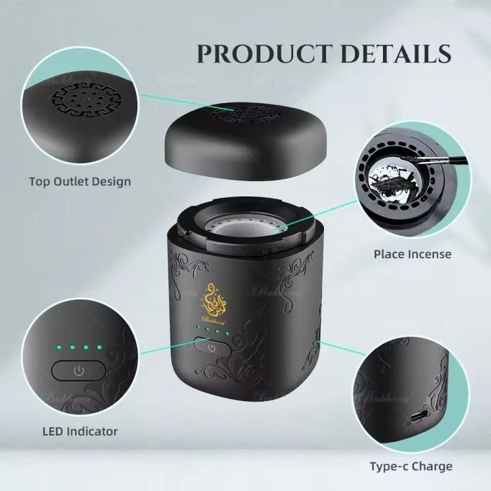 - تدعم ميزة التسخين السريع للبخور مع تصميم علوي بفتحات لتوزيع الرائحة