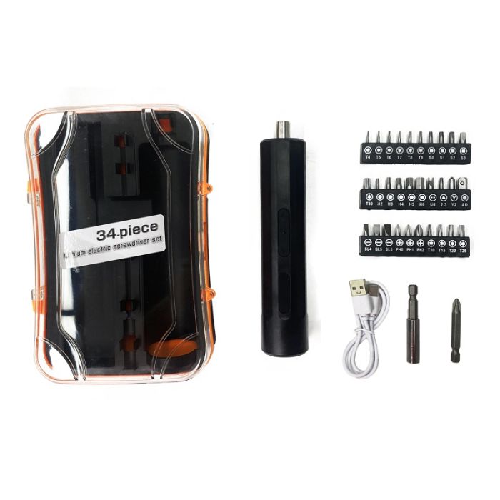 طقم مفك براغي كهربائي صغير قابل للشحن 34 قطعة