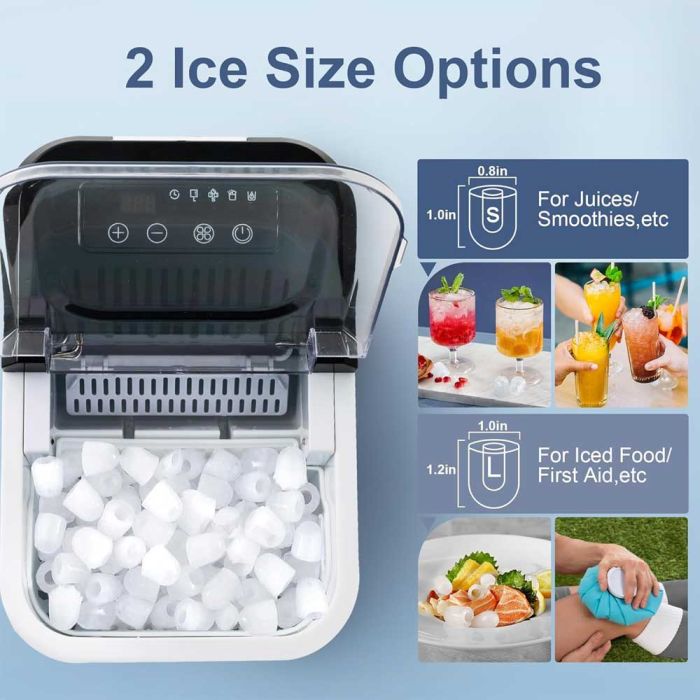 - إمكانية الاختيار بين حجمين لمكعبات الثلج (صغير أو كبير)