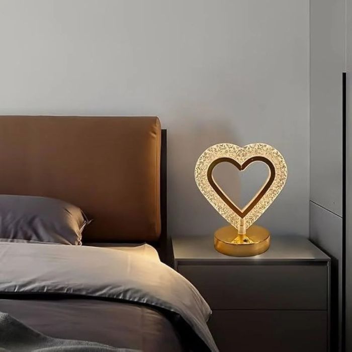 - مصباح طاولة كريستالي عصري على شكل قلب LED