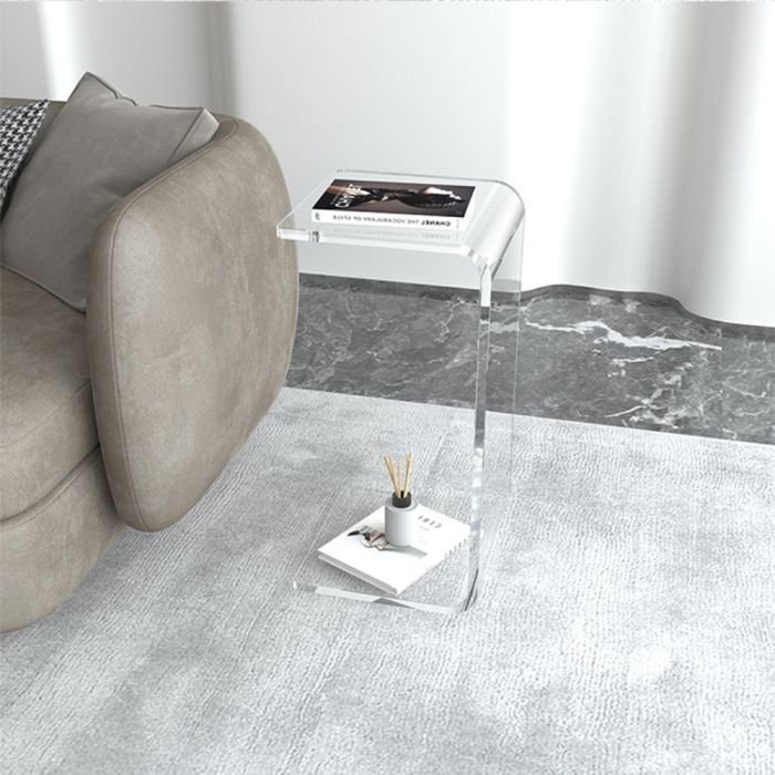 طاولة جانبية شفافة من الأكريليك بتصميم منحني عصري مصنوعة من أكريليك عالي الشفافية، هيكل قطعة واحدة بانحناءة أنيقة، خفيفة وسهلة التنسيق، مثالية بجانب الأريكة أو النافذة، تضيف لمسة فاخرة وعصرية للمكان