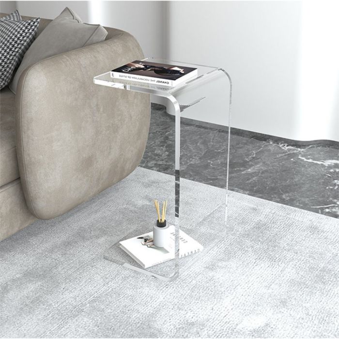 - طاولة جانبية شفافة من الأكريليك بتصميم منحني عصري 30×30×65 سم