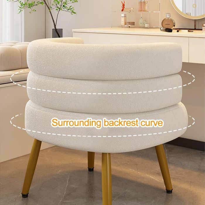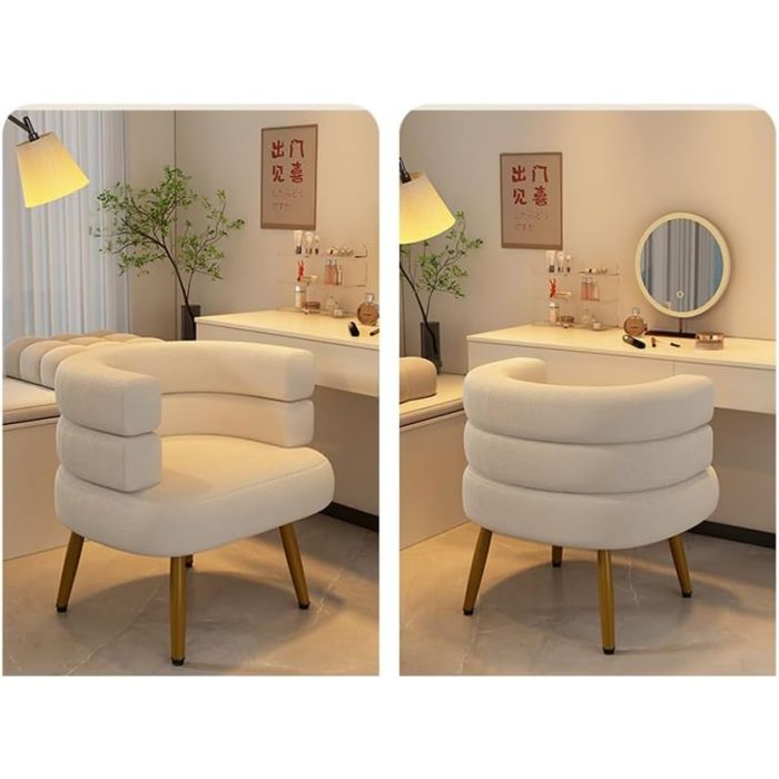 - حواف منحنية ومبطنة برغوة سميكة وقماش عالي الجودة، يمكنك الجلوس والاسترخاء فيه بشكل مريح. كرسي الاستلقاء يقف على أرجل ذهبية ناعمة ولامعة، مما يضيف لمسة من السحر