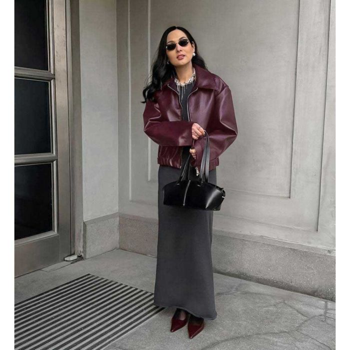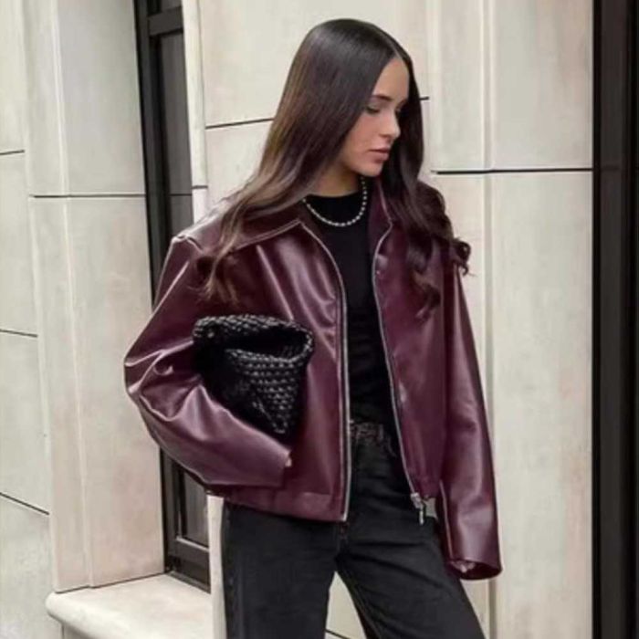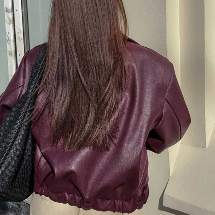 جاكيت جلدي عصري بسحاب للسيدات