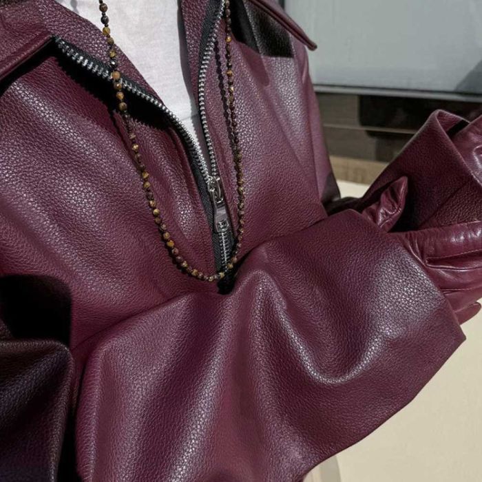 جاكيت جلدي عصري بسحاب للسيدات مصنوع من جلد متين عالي التحمل يمنح إطلالة أنيقة، يوفر دفئاً مريحاً في الأيام الباردة، وتصميمه الواسع يعزز الراحة، بينما يضيف السحاب الأمامي لمسة عصرية تناسب الإطلالات اليومية.