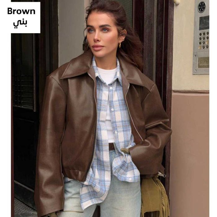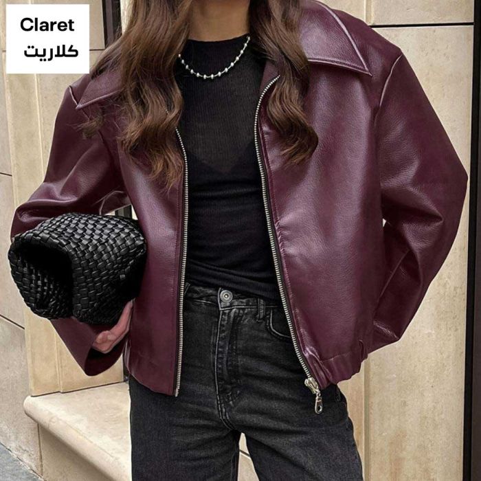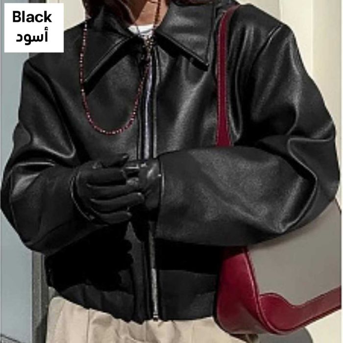 - جاكيت جلدي عصري بسحاب للسيدات