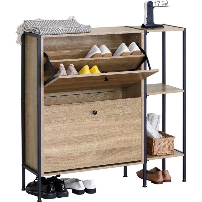 خزانة أحذية عصرية 2 درج قابلين للطي ورفوف جانبية 88 × 24 × 87 سم