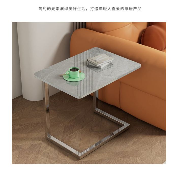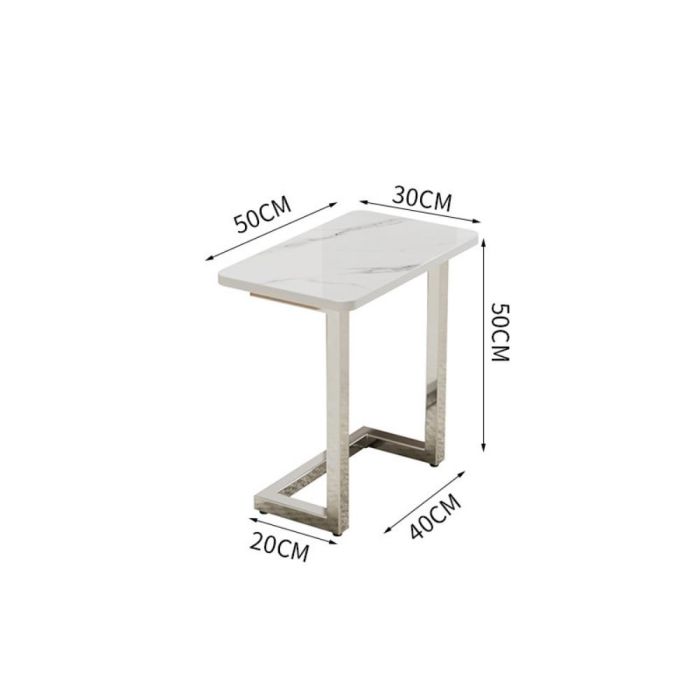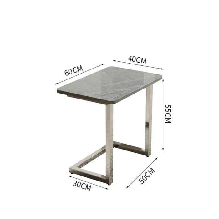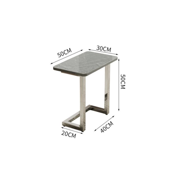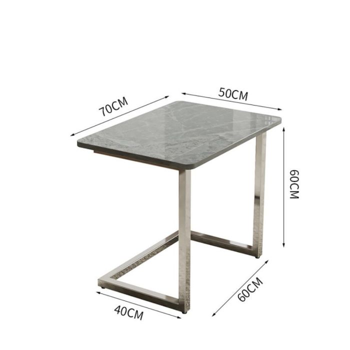 - طاولة جانبية بسطح حجري وإطار ستانلس ستيل بتصميم عصري